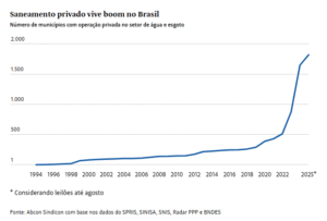 A expansão da iniciativa privada no saneamento básico não se limitou aos municípios que eram considerados o “filé mignon” do mercado brasileiro. De 2020 para cá, cidades com os piores indicadores de água e esgoto do país também entraram na leva de leilões, privatizações e PPPs (parceria público-privada) que vêm dando o tom do setor atualmente.